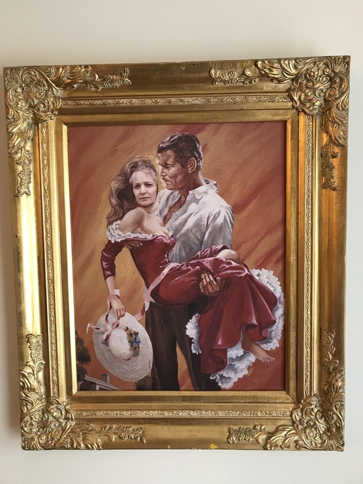 14. «Ця картина 30 років висіла в хаті моєї бабусі. Тільки що помітила, що вона наклеїла своє обличчя замість Скарлетт о'хари»