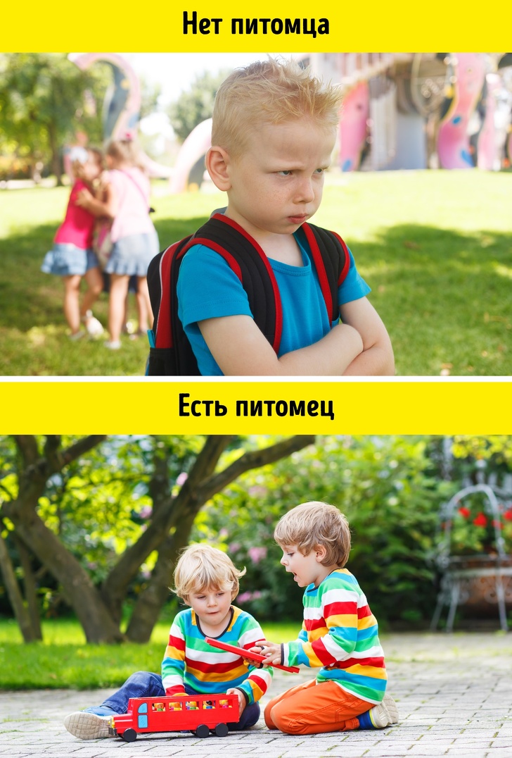 Вихованець може стати для дитини відмінним компаньйоном. Малюкові не буде нудно і самотньо, поки батьки зайняті своїми справами. Як було доведено в дослідженні Кембриджського університету, діти відчувають до тварин сильну емоційну прихильність. І іноді емоційний зв'язок дитини з вихованцем навіть більш тісний, ніж з братами і сестрами. А власники собак менше інших схильні до конфліктів.