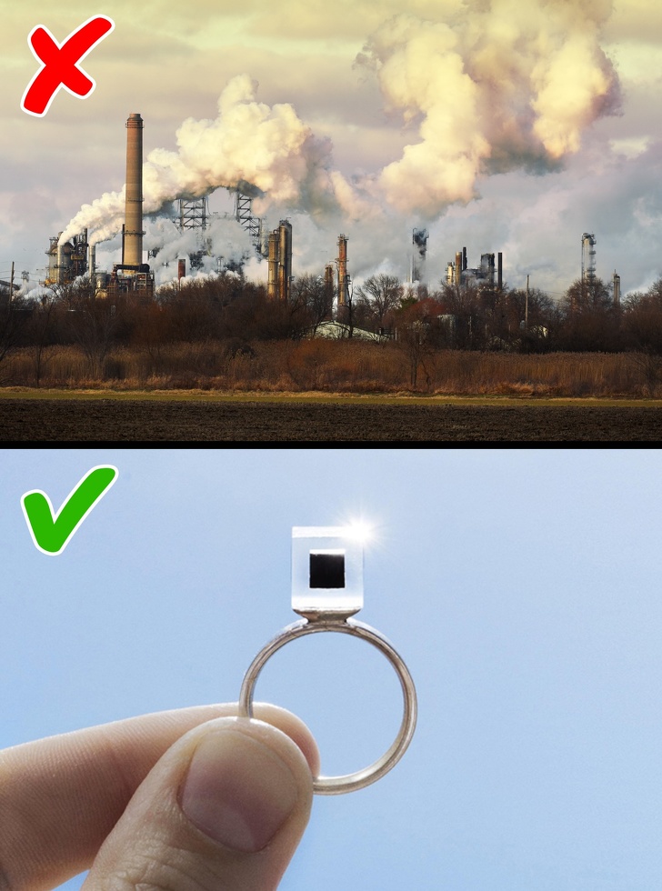 Кому і як це вже вдалося: Голландський художник Дан Розегард спільно з інженерами побудував вежу для очищення повітря. Завдяки технології іонізації вежа може очистити 30 000 куб. м повітря на годину і споживає стільки ж енергії, як звичайний водонагрівач. В процесі очищення повітря спресовуються тверді домішки, які в подальшому використовуються у виробництві ювелірних виробів. Випробування вже пройшли в Китаї і в Нідерландах, а зараз очисна конструкція знаходиться в Європі, покращуючи екологічну ситуацію в мегаполісах.