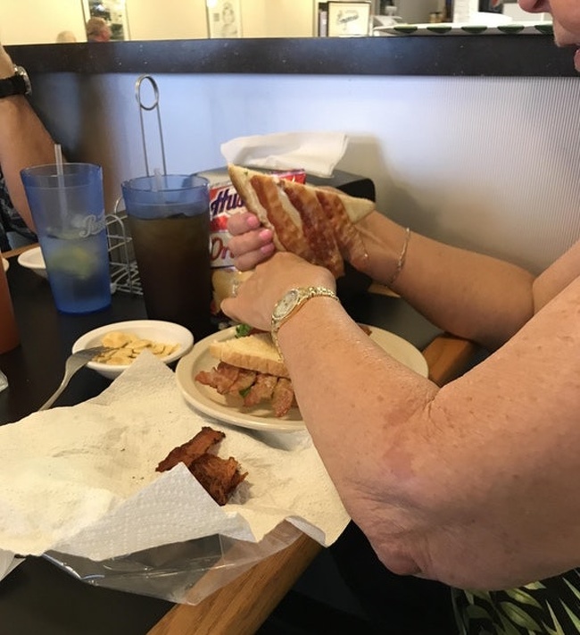 2. «Моя бабуся носить бекон з собою, тому що вважає, що в ресторанах його не доповідають»