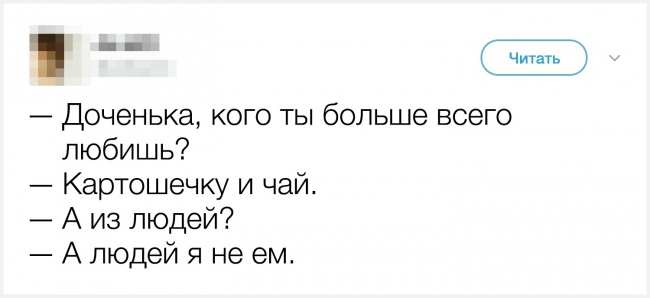 — Хом'яком, чи що? - Моя 12-річна сестра поїхала з класом в поїздку на 2 дні і забрала з собою мої навушники. Коли я зателефонувала їй запитати, навіщо вона так зробила, то отримала щиру відповідь: «Я думала, ти не прокинешся!»