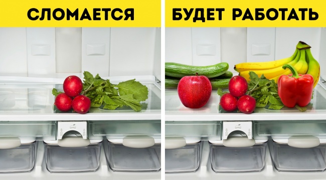 Неправильне розподіл продуктів або робота порожнього холодильника без відповідної настройки температури охолодження також загрожує компресора перевантаженнями. Всю необхідну інформацію про це можна знайти в інструкції до вашої моделі.