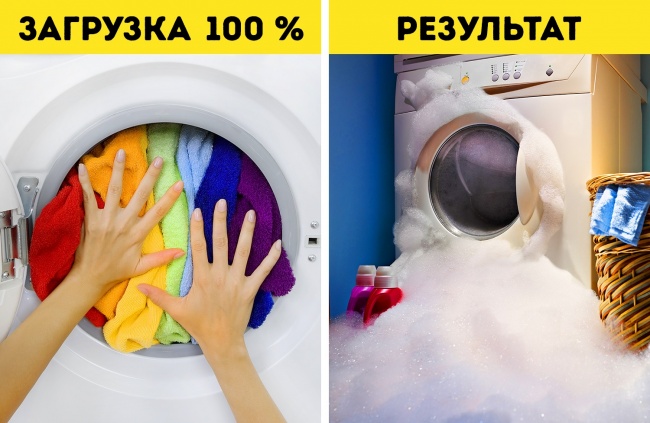 - Перевантаження пральної машини загрожує не тільки розхитуванням ніжок із-за дисбалансу під час віджиму, але і зміщенням або навіть псуванням ременя, завдяки якому крутиться барабан. Втім, це може статися і з-за нерівномірно розподіленого білизни.