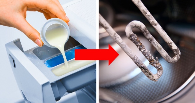- Нагрівальний елемент псується від перегріву через нальоту і накипу, які з'являються не тільки з вини жорсткої води, але і з-за занадто великої кількості прального порошку.