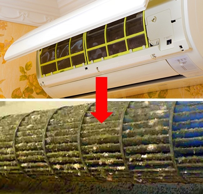 Забитий пилом і дрібним сміттям теплообмінник може стати причиною поломки кондиціонера. Необхідно регулярно чистити зовнішній блок.