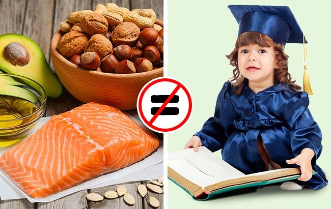 І риба, і горіхи містять жирні кислоти омега-3, які допомагають зберегти здоров'я мозку. Проте їх вплив на розвиток розумових здібностей майбутнього малюка не доведено.