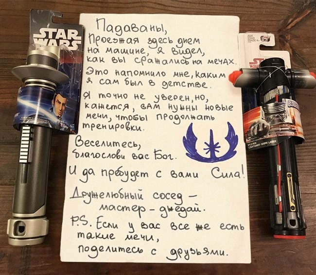 12. «Незнайомець залишив ці мечі і записку у порога мого будинку. Як він дізнався, що діти вже давно хочуть стати джедаями?»