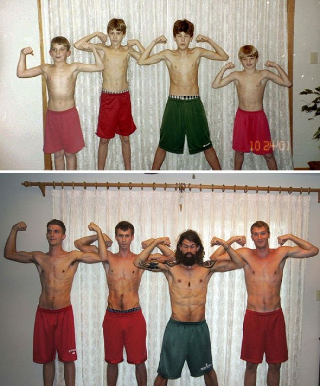 «Отримав багато позитивних коментарів, відтворивши цей знімок. Тут я, мій брат і два двоюрідних брата»