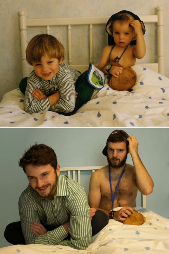 Дивлячись на ці знімки, ми теж захотіли скоріше відтворити улюблені фотографії дитинства. Залишилося тільки зібрати друзів, приїхати в рідні краї, одягнутися схожим чином... загалом, справа за малим. А чи подобається вам така ідея? Може, ви самі робили щось подібне? Чекаємо ваших коментарів.