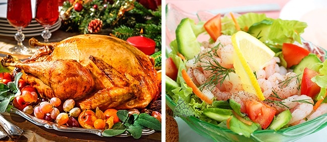 Що приготувати смачненького? Цим питанням задаються тисячі господинь по всьому світу. І хоч членам королівської сім'ї не доводиться стояти біля плити, питання з різдвяними стравами у них вирішено давно. Як розповів колишній шеф-кухар королеви, на різдвяний обід традиційно подають салат з креветок або омарів, запечену індичку з овочевим гарніром. Під час чаювання після обіду гостей пригощають пудингом з коньячним маслом.