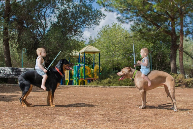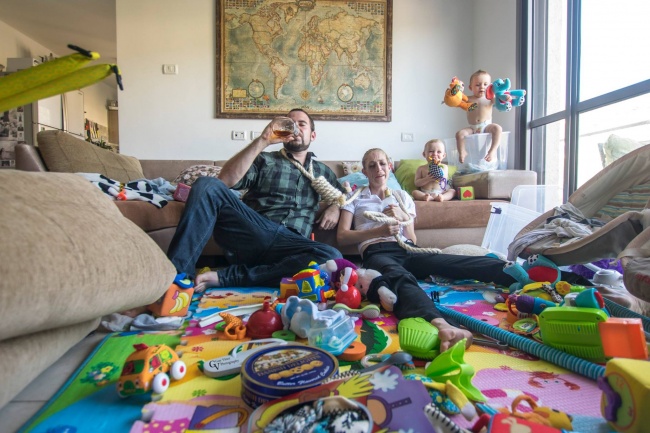 Ізраїльський фотограф Гай Вайнер і його дружина роблять щоденні начерки про своє життя з однорічними близнюками Бараком і Яналем, щедро приправляючи їх фотошопом.