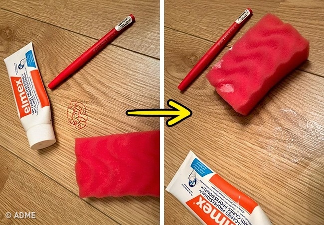 Розмальований фломастерами або маркерами дерев'яну підлогу можна повернути в попередній стан за допомогою звичайної зубної пасти. Нанесіть трохи пасти на пляму і гарненько потріть його губкою або паперовим рушником.