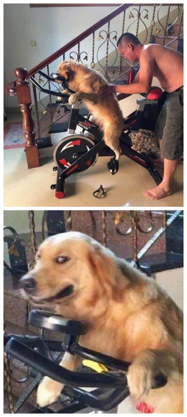 Як-то раз батько напився і вирішив навчити собаку кататися на велосипеді