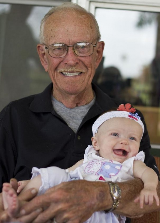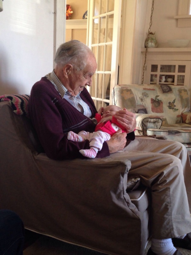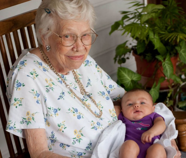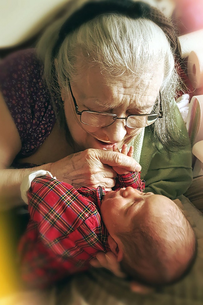 Моїй бабусі майже 100 років. Вона дивиться в очі своїй правнучці, якій тільки 2 дні