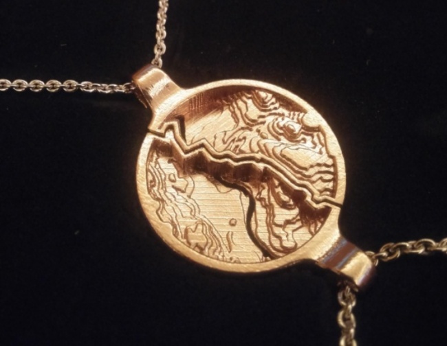 Хлопець змоделював сам і створив подвійний кулон на День святого Валентина. На ньому зображена дорога між будинками подружжя в рідному місті, де вони виросли і познайомилися