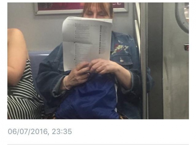 2. Жінка роздрукувала коментарі до посту в Facebook, щоб прочитати їх в метро