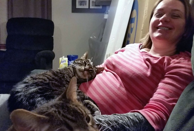 «Ця кішка — мама. Вона знає, наскільки важко часом буває вагітним, і дуже любить обіймати мій живіт».