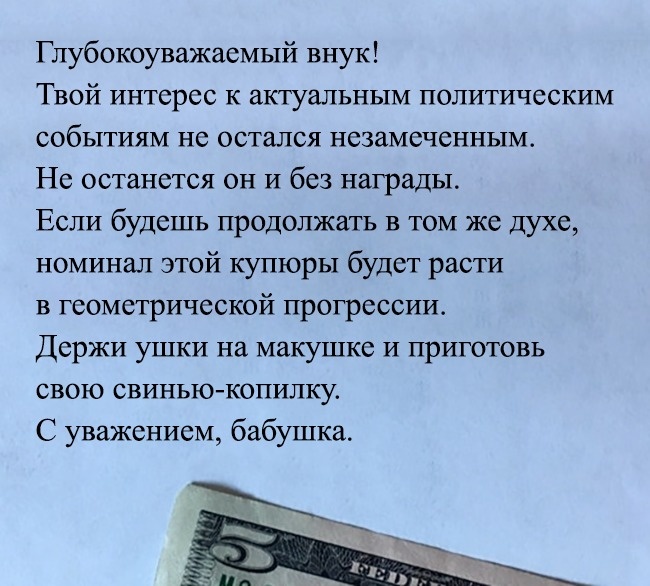 Мені 32. Я отримав цю записку від своєї політично активної 87-річної бабусі