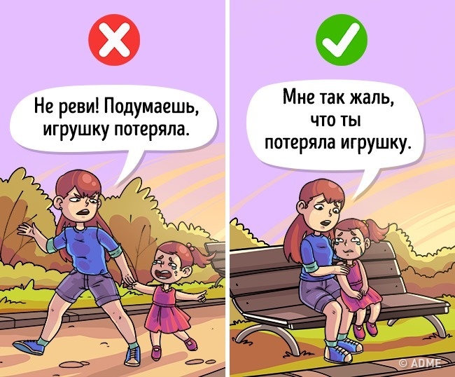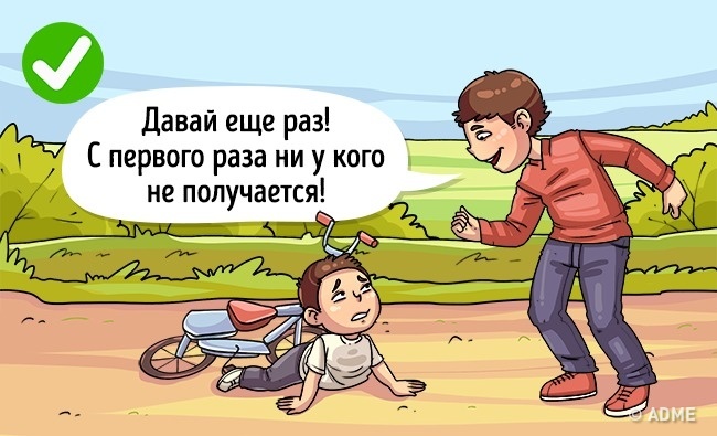 «Нічого страшного, спробуй ще раз», «Я вірю в тебе!», «З першого разу ні в кого не виходить», — так потрібно говорити дитині в разі невдачі, навіть якщо вона здається серйозною (дитина отримав «2» за контрольну, програв на змаганнях і т. д.).