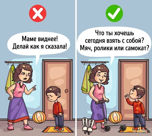 Надаючи дитині право вибору, ми вчимо його прислухатися до себе і не боятися відхиляти пропозиції, які йдуть врозріз з його переконаннями, бажаннями, інтересами. Діти, яким постійно вказують, виростають пасивними, залежними і легко керованими чужим авторитетом.