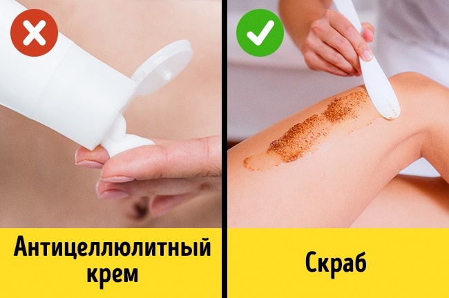 Антицелюлітні креми не приносять бажаного ефекту, а ось скраби видаляють ороговілий шар шкіри, покращують кровообіг і прискорює метаболічні процеси: