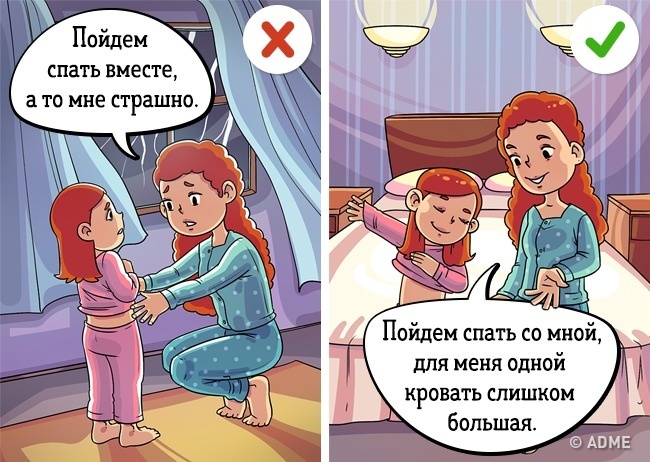 Це природно, що і у дорослих є свої страхи, але не треба розповідати про них своїй дитині. Адже невідомо, що може видати дитяча фантазія, коли малюк буде знаходитися один, наприклад, вночі у кімнаті. Краще схитрите.