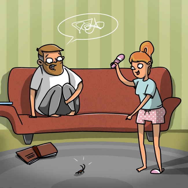 Де це бачено, щоб чоловік відкрито заявляв про свої страхи? Ніде. Але ж фобії є у всіх. Тільки от чоловіки не зізнаються, що бояться темряви, павуків чи клоунів, щоб зайвий раз не показувати свою слабкість. Будьте готові до того, що сидіти на спинці дивана буде він, а ганятися за тарганом з тапком — ви.