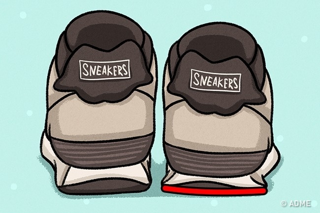 Якщо в одній кросівки «поїхала» п'ятка або більше стерлася підошва, міняйте взуття. Так само доведеться вчинити, якщо кросівки на плоскій поверхні не стоять прямо.