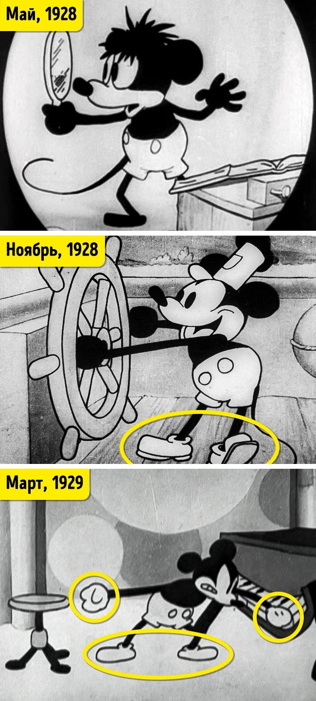 Як зізнавався Уолт Дісней в біографії: «Ми не хотіли, щоб у Міккі Мауса були мишачі лапки, він повинен був бути більше схожий на людину. Тому ми одягли на нього рукавички».