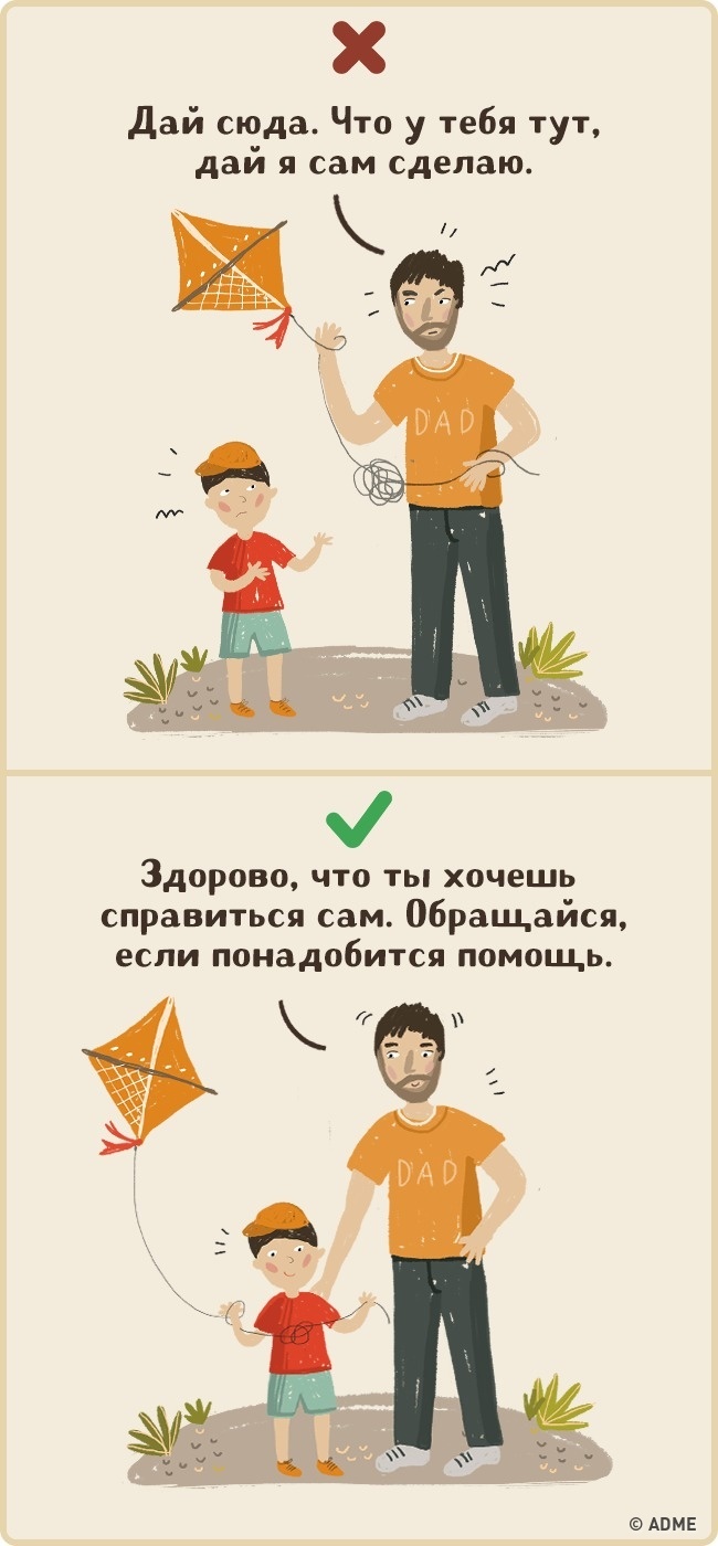 Всі ми знаємо, як іноді складно просити допомоги у кого-то. Дитина, яка не звикла отримувати допомогу в дрібницях, навряд чи звернеться до вас у складній ситуації. Тому починайте з малого — запропонуйте допомогти прибрати в кімнаті, допоможіть з домашнім завданням. Не бійтеся розбалувати сина чи дочку, адже чим більше ви допомагаєте по дрібницях, тим вище ймовірність, що в разі серйозного конфлікту дитина прийде за порадою до вас. Втім, це не означає, що потрібно почати робити все замість дитини.