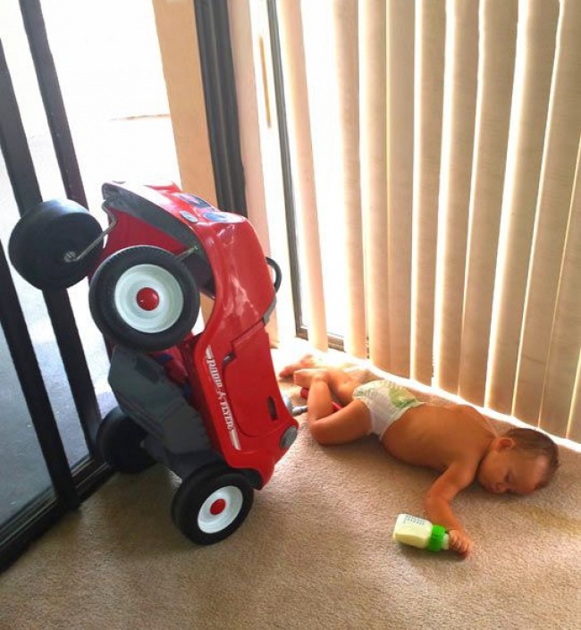 Мій син катав машину по дому і пив молоко, а потім я знайшов його в такій позі.