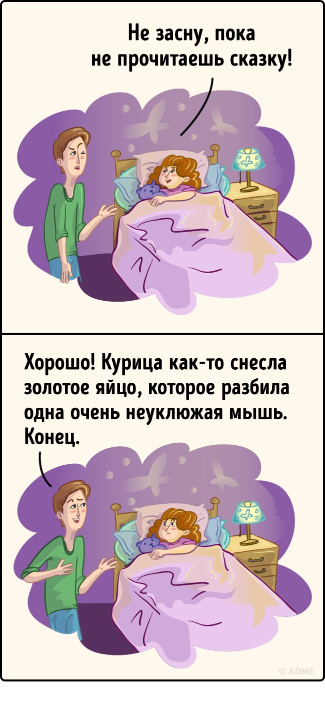 Сильно скорочує казку перед сном, щоб раніше вкласти дитину
