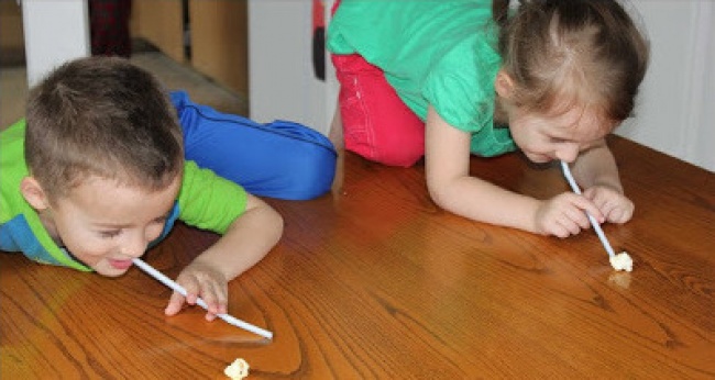 Зайняти малюка допоможе такий простий трюк з втулкою від паперових рушників. Порада: не використовуйте тверді речі в якості снарядів, щоб дитина не злякався різкого звуку.