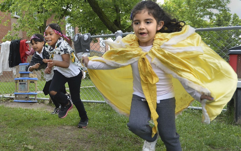 У Канаді вихователі намагаються проводити з дітьми якомога більше часу на вулиці. На фото діти грають у супергероїв в одному з дитячих садів Торонто.