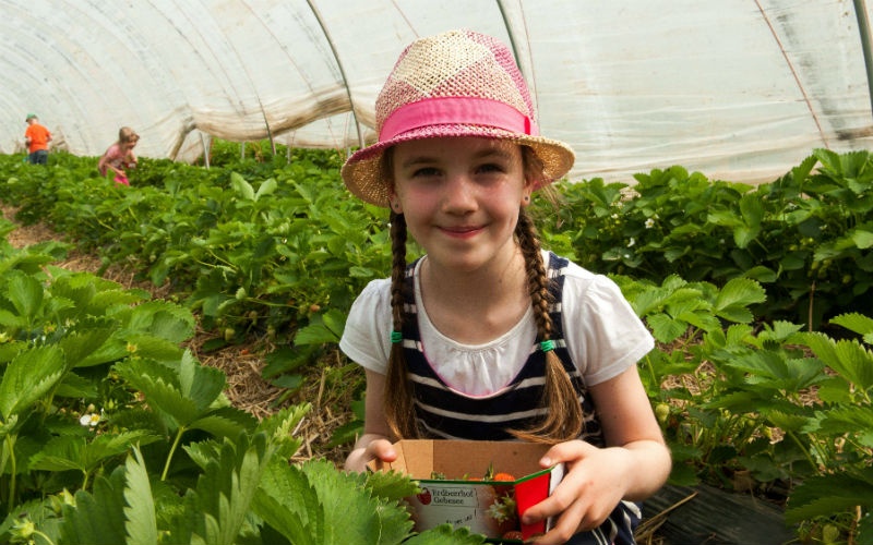 Вихованці старшої групи дитячого садка беруть участь у зборі першого врожаю полуниці.