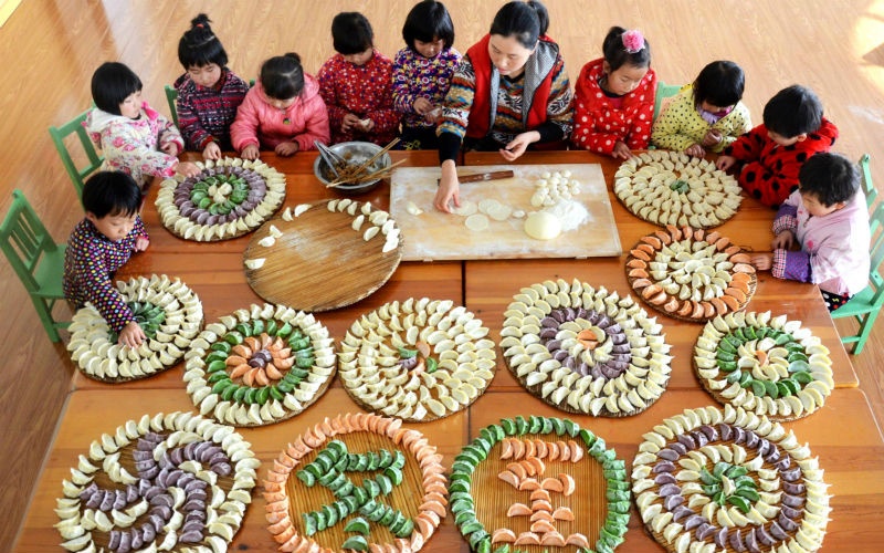 Діти по всій країні ліплять пельмені в честь свята зимового сонцестояння.