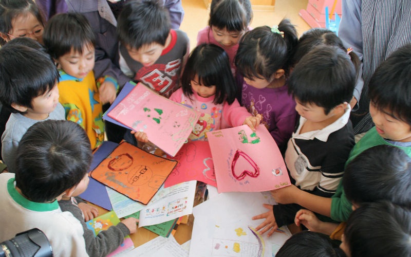 Вихованці дитячого садка Фукусіми розглядають листи дітей з Домініканської Республіки. Більше 250 листів прийшло японським малюкам в якості підтримки після землетрусу і цунамі в березні 2011 року.