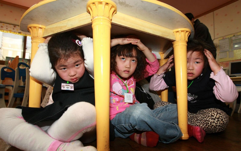 У той рік землетрус зачепило і Південну Корею. У дитячому садку в Сеулі діти ховалися під стіл під час поштовхів.