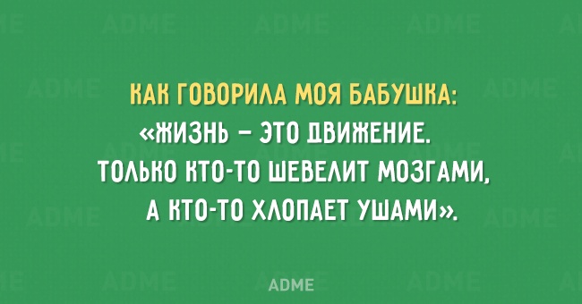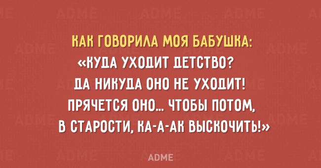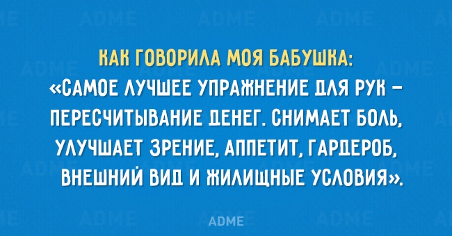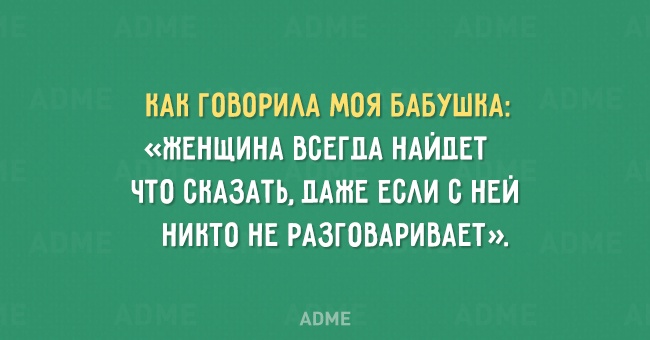 Наші бабусі знають всі тонкощі життя і в будь-якій ситуації з легкістю знайдуть правильну відповідь. Але найцікавіше — це їх неповторна манера висловлювати свою думку в незабутніх фразочках, деякі з яких залишаються на вустах ще кількох наступних поколінь.