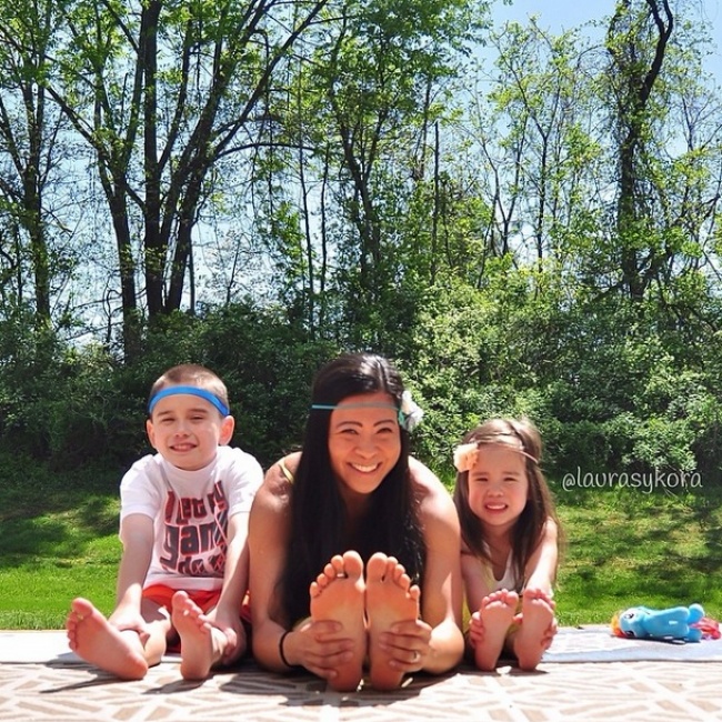 Лора Касперзак, 36-річна мама двох дітей та інструктор з йоги з Нью-Джерсі, підкорила Instagram своїми фотографіями, на яких вона застигає в різних позах йоги. 4-річна дочка і 8-річний син, натхненні її прикладом, намагаються від неї не відставати.