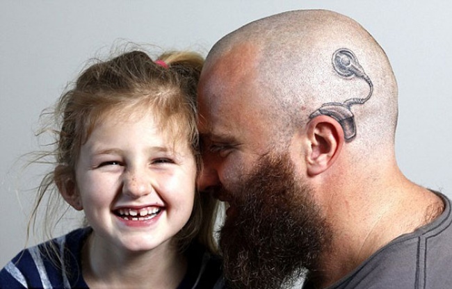 Елістер Кемпбелл вирішив підтримати свою шестирічну дочку Шарлоту, яка має проблеми зі слухом. Зробив він це дуже зворушливим способом — набив тату у вигляді слухового апарату.