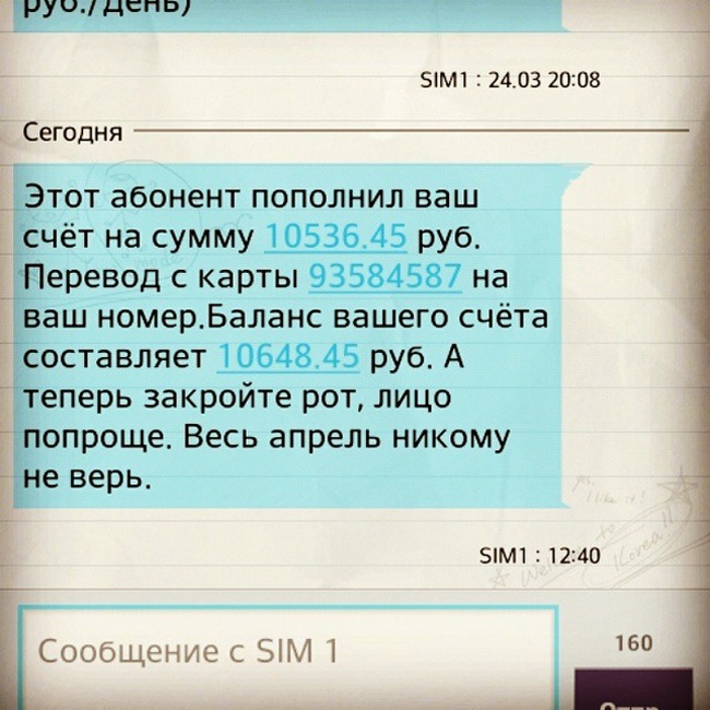 Син просто попросив 500 рублів, що на щедрий батько відповів: «Звичайно, візьми, вони в лівому верхньому ящику комп'ютерного столу».