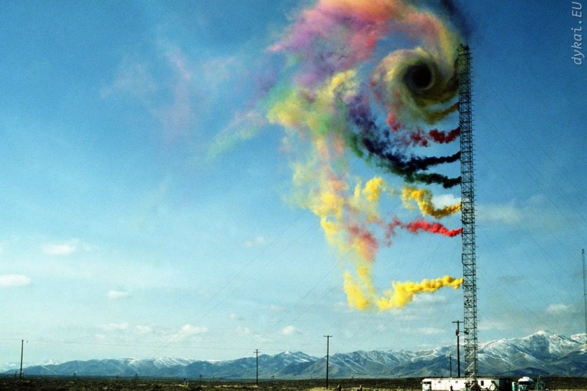 Вчені вивчають напрямок і інтенсивність вітру з допомогою пофарбованого диму.