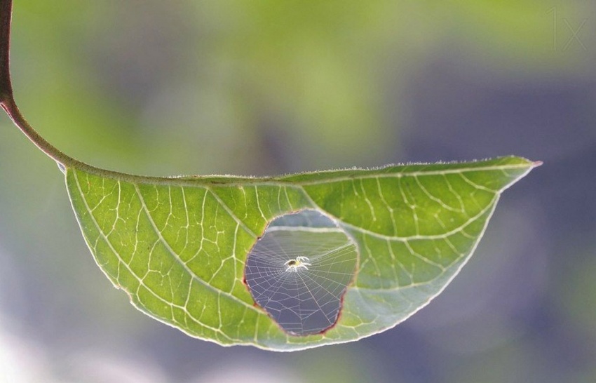 Павук сплів павутинку в листку.