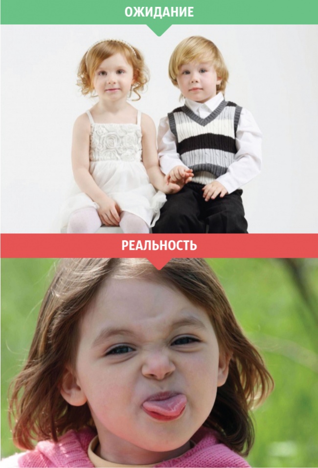Батькам здається, що дитина, якого вони чекають, буде літати по повітрю, пахнути трояндами і вирішувати логарифми ще перш, ніж проріжуться зубки. Побачивши чужого малюка, який закочує істерику в магазині, вони думають, що їх дитя так робити ніколи не буде.