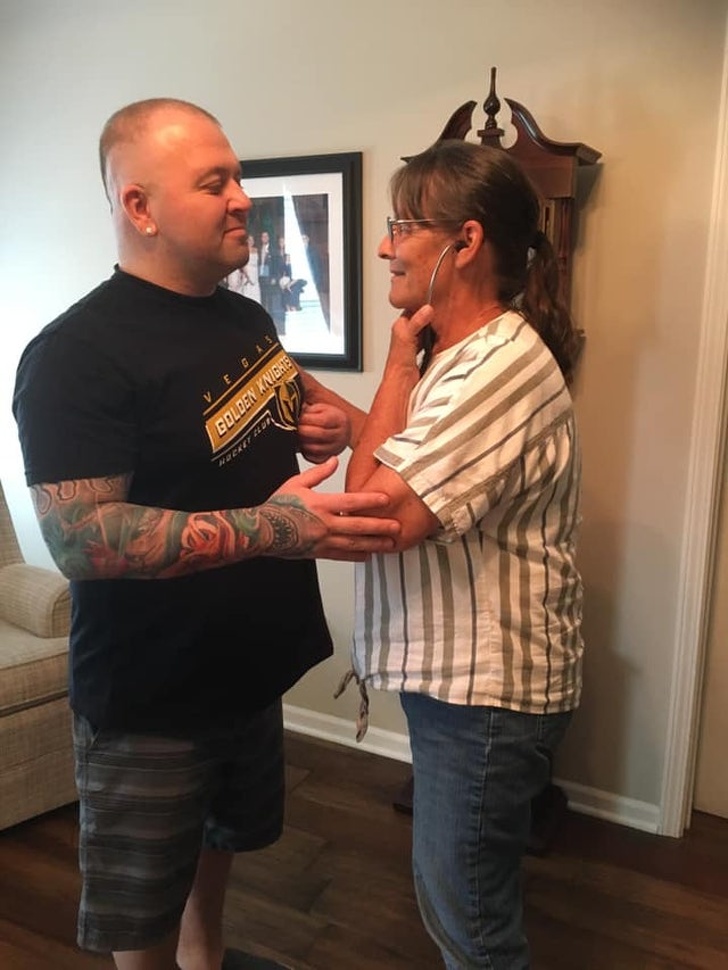 Мати слухає серце своєї дочки, яка після смерті стала донором для цього чоловіки