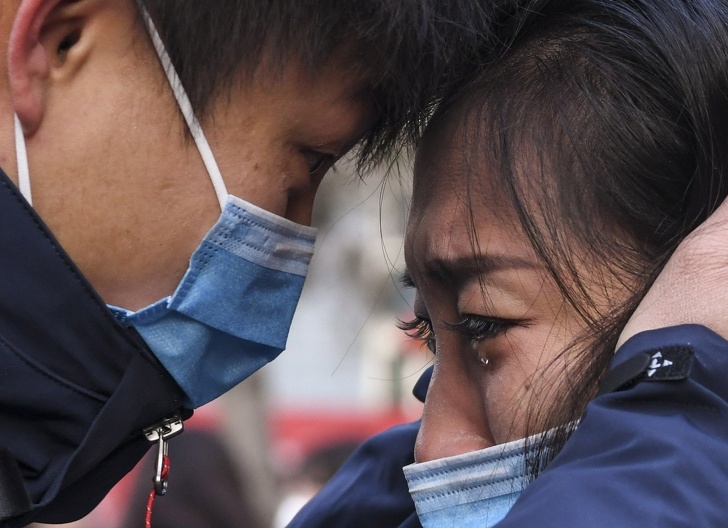Китайський медик прощається з дружиною перед тим, як відправитися в Ухань, щоб допомагати людям боротися з коронавірусом