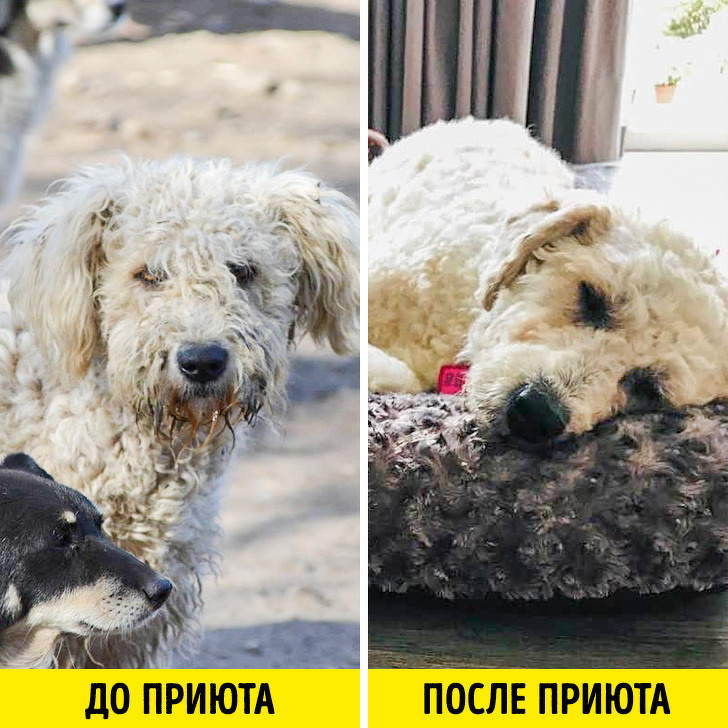 Це Пудлица. Коли вона потрапила в притулок, нелегко було розгледіти в ньому чистокровного пуделя. Сьогодні у неї новий будинок і вона повноцінний член родини.