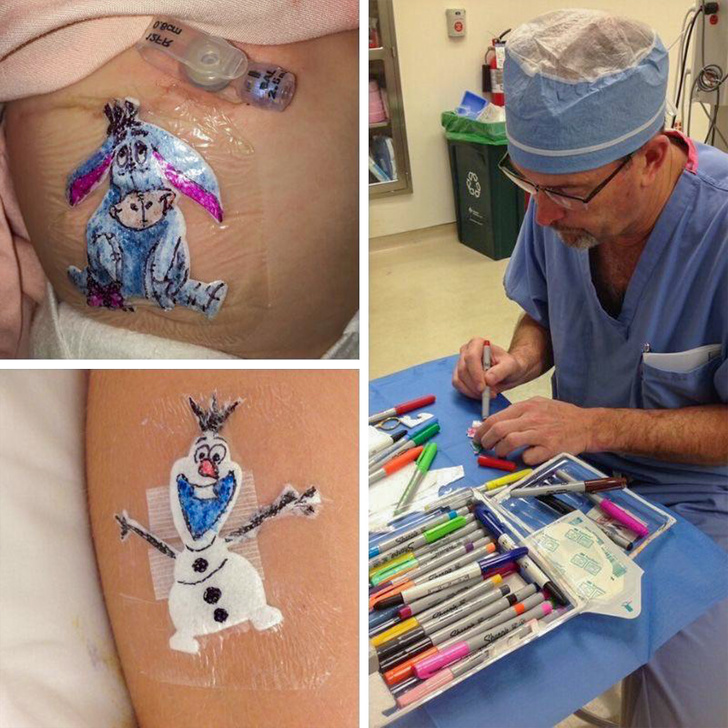 1. Дитячий хірург не хоче, щоб шрам від операції засмучував його маленьких пацієнтів. Тому він малює персонажів, які їм подобаються, і дивує їх картинкою