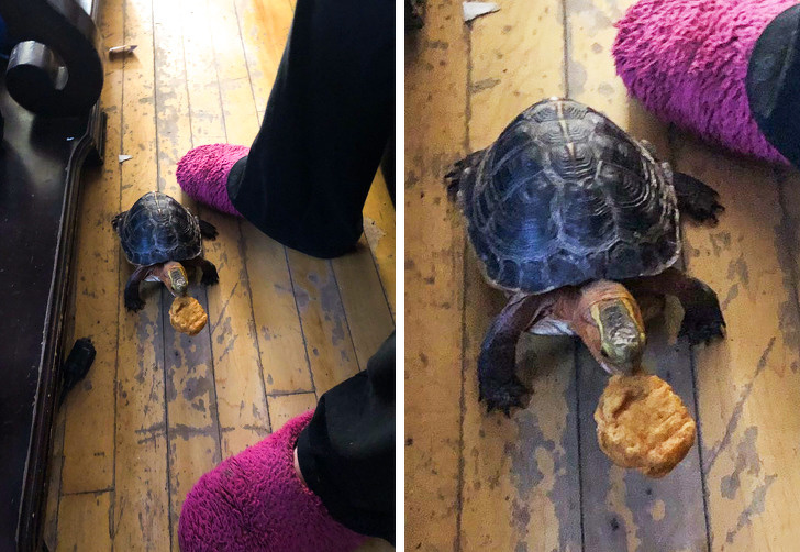 13. "У моїх батьків є черепаха, яка спокійно блукає по будинку. Сьогодні вона знайшла курячий наггетс під диваном і принесла їм у подарунок"